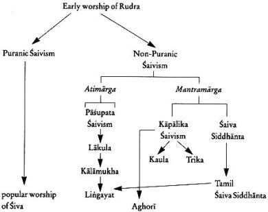 Daneben entstanden verschiedene heute vielfach schon erloschene Schulen des nicht-puranischen Shivaismus mit einer Aufspaltung in die Zweige des