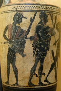 Iolaos ist ein Thebaner und der Sohn des Iphikles, eines Sohn von Alkmene und Amphitryon, und Automedusa, einer Königstochter aus Megara. Er gehört nicht zum ursprünglichen Herakles-Mythos.
