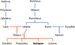 [[Datei:Genealogical tree of Antigone.png|150px|thumb|right| Stammbuam von Antigone ]]
