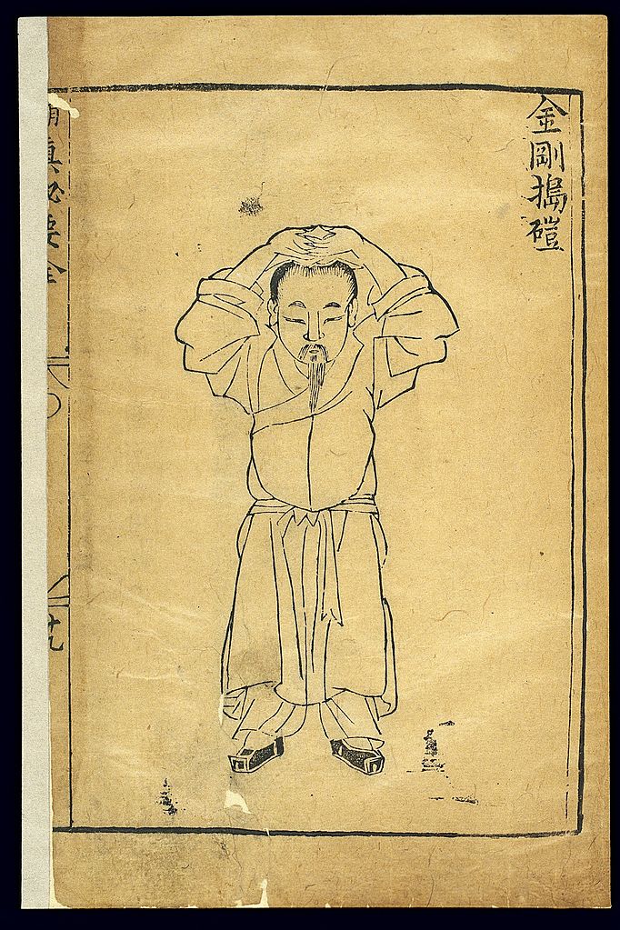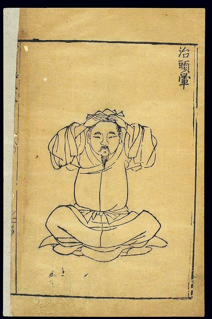 | 17:07, 6. Apr. 2023 | Qigong exercise to treat dizziness Wellcome L0038882.jpg (Datei) | 186 KB | https://commons.wikimedia.org/wiki/File:Qigong_exercise_to_treat_dizziness_Wellcome_L0038882.jpg Qigong exercise to treat dizziness Description Xiuzhen miyao, a gymnastic (daoyin/qigong) text of unknown origin, was rediscovered and published with a preface by Wang Zai in 1513 (8th year of the Zhengde reign period of the Ming dynasty). It records 49 exercises. This illustration depicts a technique for treating dizziness. It is practised as follows: One sits upright, clasping the head in bot… | 1 | |