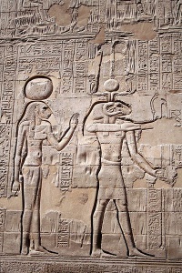 Die Göttin Khnum hat auf Abbildungen neben der Sonnenscheibe(Re) und den Tafeln über dem Kopf zwei Schlangen, die den Fluiden Jin und Jang entsprechen.