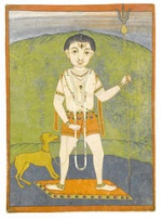 Bhairavas Reittier(vahana) ist ein weißer Hund, manchmal auch 2 Hunde.