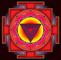 In den höheren Welten lösen Formen Kräfte aus. Das Yantra hat daher eine dreifache Funktion: Form (Akriti-rupa), Funktion (Kriya-rupa) und Energie (Shakti-rupa)[1]. In der Mitte des Yantras ist der Bindu.