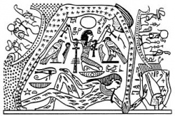 Die Himmelsgöttin Nut symbolisierte in der ägyptischen Mythologie das Firmament und wurde als die Mutter der Gestirne angesehen. Im Nutbuch wird sie als Mutter des Re und Gemahlin des Osiris beschrieben: