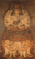 Manchmal bildet er zusammen mit Manjushri zu den Seiten des Buddha Shakyamuni die sogenannte Shakyamuni-Dreiheit wie im Anuyoga.