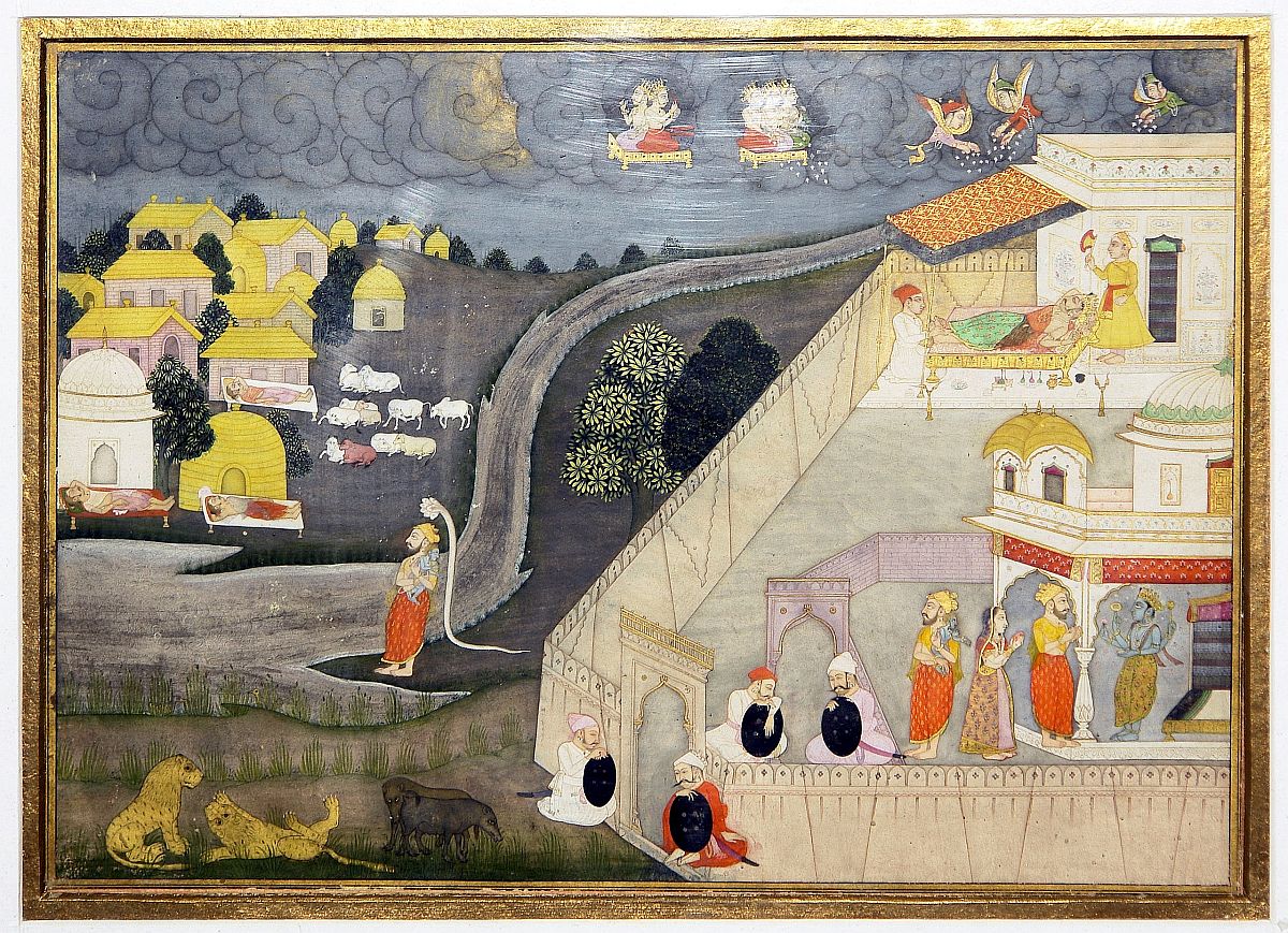 | 17:37, 12. Aug. 2023 | Ravana seizes the chariot Puspaka from Kuvera.jpg (Datei) | 467 KB | Adm1 (Diskussion | Beiträge) | https://commons.wikimedia.org/wiki/File:Ravana_seizes_the_chariot_Puspaka_from_Kuvera.jpg Qasim, Indian, Mughal dynasty English: Folio from the Ramayana of Valmiki (The Freer Ramayana), Vol. 2, folio 297; recto: text; verso: Ravana seizes the chariot Puspaka from Kuvera Date between 1597 and 1605 Medium Opaque watercolor, ink, and gold on paper Dimensions height: 27.5 cm (10.8 in); width: 15.2 cm (5.9 in) Collection Freer Gallery Credit line Gift of Charles Lang Freer F1907.271.297… | 1 | |