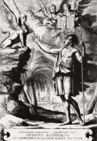 Kircher befasste sich auch mit Hermetik und anderen Religionen. Sein bekanntestes Werk ist 'Œdipus Ægyptiacus' (1652), in dem er behauptet, die antike ägyptische Sprache sei von Adam und Eva gesprochen worden und Hermes Trismegistos und Moses seien ein und dieselbe Person gewesen. Die ägyptischen Hieroglyphen seien okkulte Symbole, die nicht wörtlich übersetzt, sondern nur allegorisch (sinnbildlich) ausgelegt werden könnten, da ihre wahren Gehalte dem Eingeweihten vorbehalten seien.