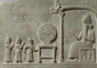 2. Marduk ('Die untergehende Sonne') – der spätere babylonische Reichsgott. Er steht dem Götterhimmel vor und war im mesopotamischen Raum als Bel („Herr“) bzw. Bel-Marduk bekannt. Im Weltschöpfungsmythos Enuma Eliš(Als oben) wird ihm die Schaffung der Welt zugeschrieben, und er wird dort von den anderen Göttern zu ihrem Oberhaupt gewählt. Sein Symboltier ist der feurige Mušḫuššu-Drache. Marduk besiegte auch den Drachen Tiamat. Im Mythos wird auch die Erschaffung der Erde geschildert. Apsû ('der Uranfängliche' - die göttliche Personifizierung des sich unter der Erde befindlichen Süßwasserozeans) und Tiamat ('die sie alle gebar' - als Seeungeheuer dargestellt) sind die lange vor der Schöpfung ersten Daseinsformen.
