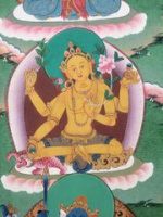 Sie hat ein Gesicht und vier Hände. Das erste Paar hält einen Aśoka - Zweig und einen Lotus. Das andere Paar hält einen wunscherfüllenden Juwel in Gewährungsgeste und einen Stab.