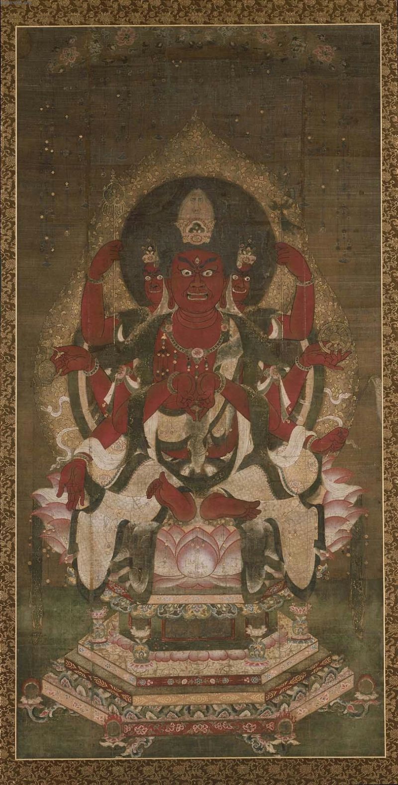 Bato Kannon, the horse-headed Bodhisattva of Compassion, 12th century. Ink, color, gold, and silver on silk. 166.1 x 82.7 cm (65 3/8 x 32 9/16 in). From Museum of Fine Arts, Boston.