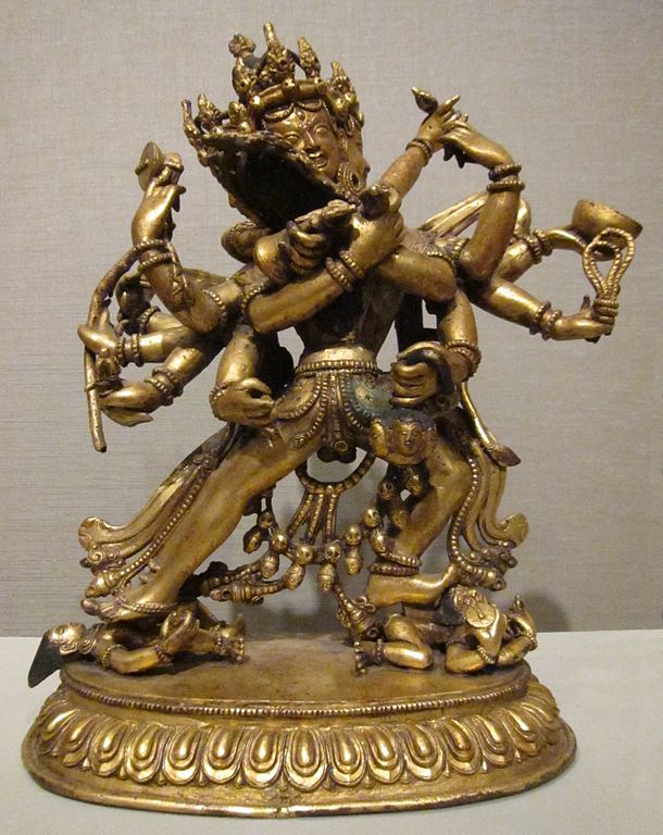 Bild von https://commons.wikimedia.org/wiki/File:Hevajra_statue_from_Nepal,_19th_century,_gilt_bronze,_Honolulu_Museum_of_Art.JPG Hevajra statue from Nepal, 19th century, gilt bronze, Honolulu Museum of Art, accession 10884.1
