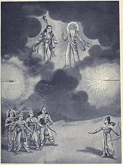 Datei:Narada and Vyasa stop Brahmasironamakastra used by Aswatthama and Arjuna.jpg