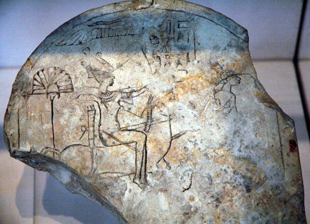 Egyptian stele, mistakenly identified as depicting the goddess Anat, and in fact showing rather Astarte, whose attributes were horse, chariot and bow, Deir el-Medina, the eighteenth-twentieth dynasty (1540–1070 BCE)