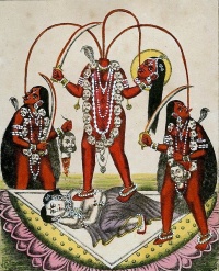 Die enthauptete Gottheit Chinnamastā steht auf Kama and Rati - Die Schädelkette symbolisiert den Sieg über die niederen Krafte - ähnlich das europäische Caput Mortuum - der mystische Tod
