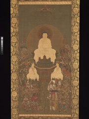 Shakyamuni Triade mit Fugen (Samantabhadra) auf einem Elefanten und Monju (Manjushri) auf einem Löwen