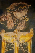 Im Adyton des Apollon-Tempels in Delphi stand der Omphalos (griech.: „ὀμφαλός“, ÑmfalÒj „Nabel“) - Kultstein, der ursprünglich Gaia gewidmet war.